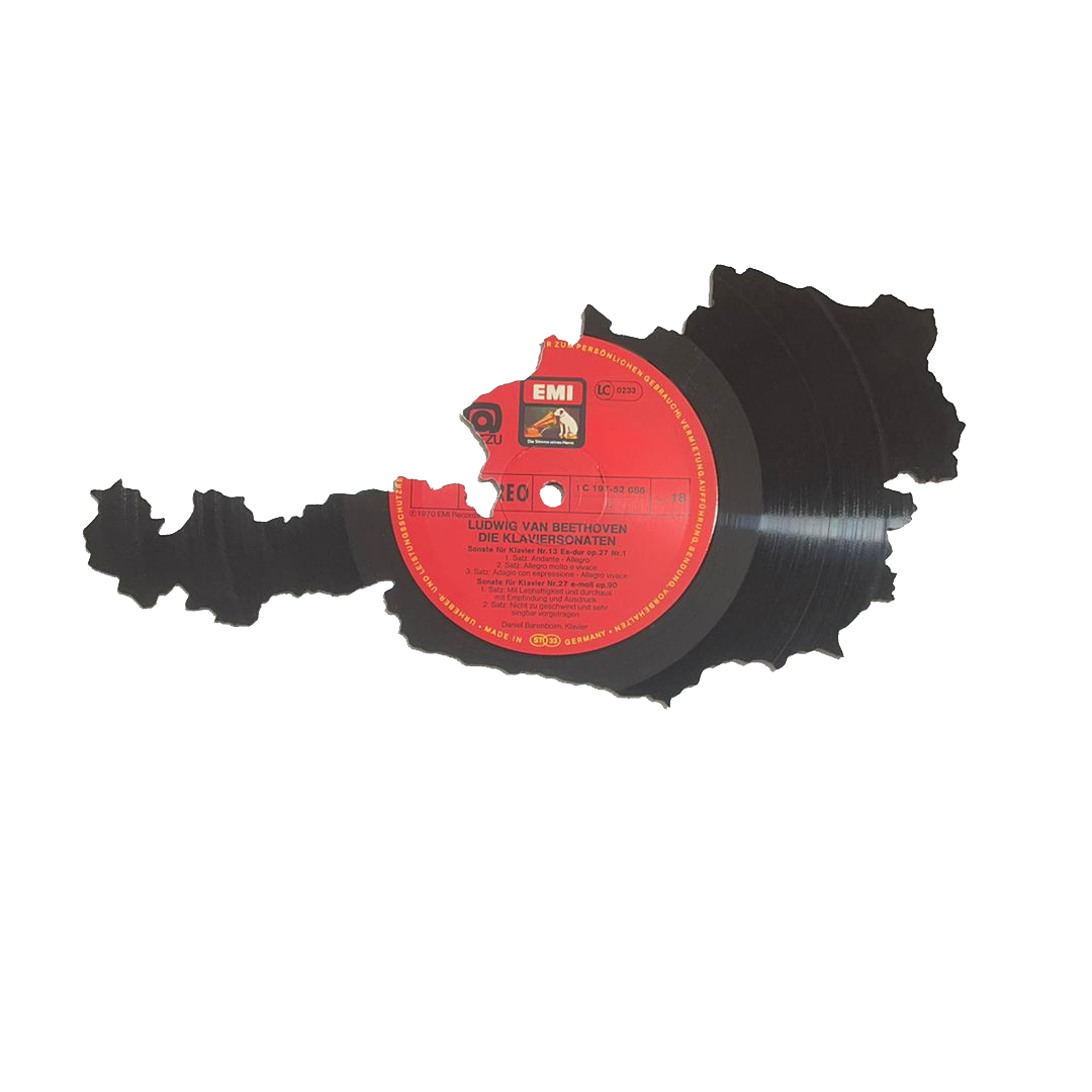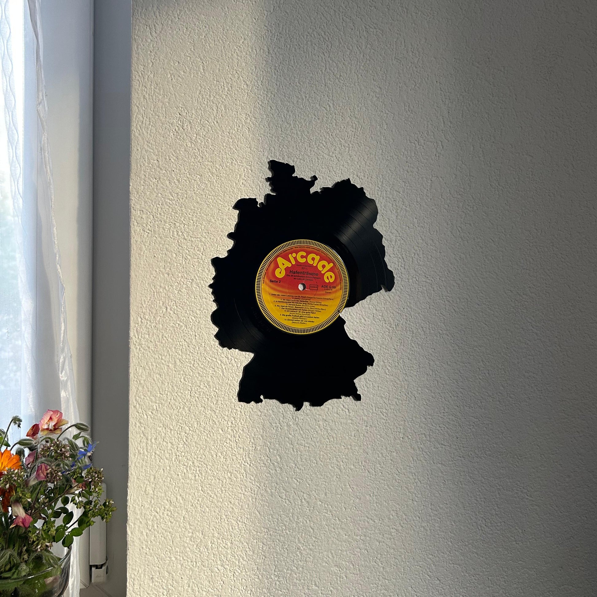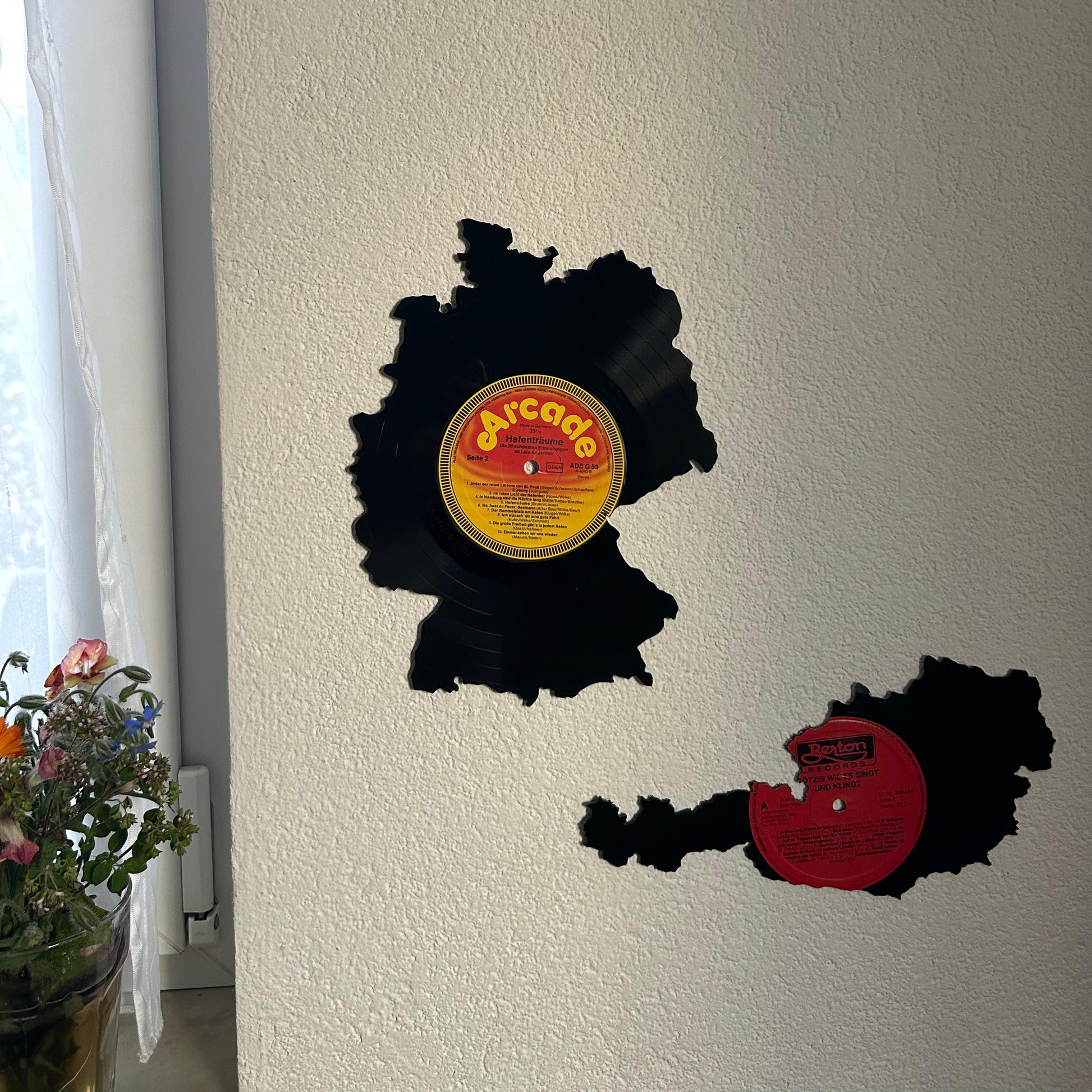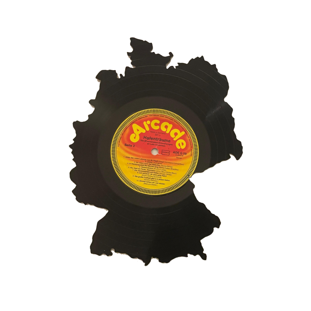 Diese besondere Schallplatte wurde kunstvoll ausgeschnitten und zeigt die Umrisse deines Lieblingslandes oder Bundeslandes. Jedes Stück wird in sorgfältiger Handarbeit gefertigt und ist ein echtes Unikat – ideal, um deine Verbundenheit zu deiner Heimat oder deinem Herzensort auszudrücken.